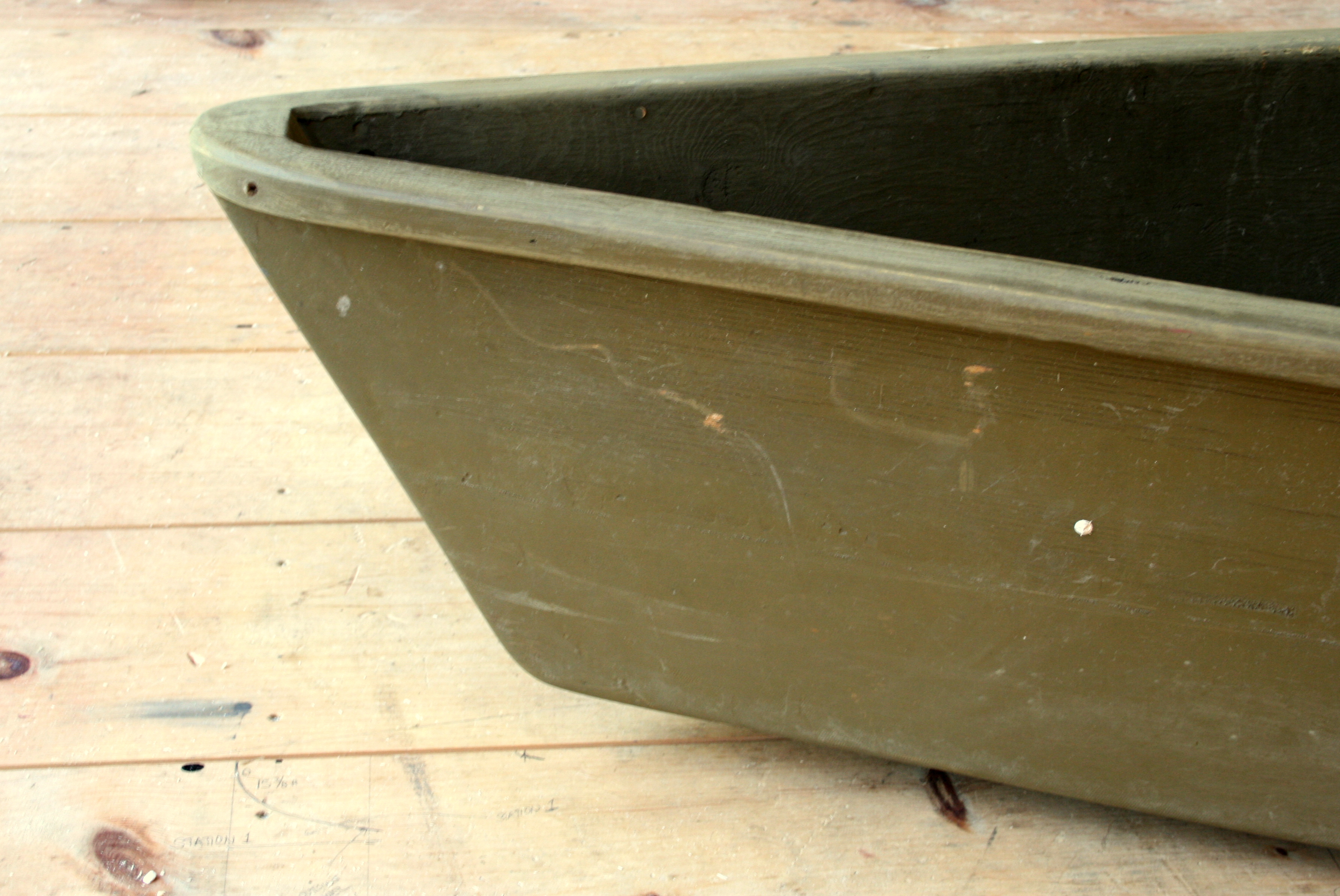 Here are a few more words about – and images of – the Lost & Found Boat that is the protagonist of the tale by the same name (see Thoughts & Tales). This plywood pirogue was built as a “hundred dollar boat” to be left next to a favorite marsh through the gunning season. She “disappeared” after one month – but was rediscovered about 10 years later.