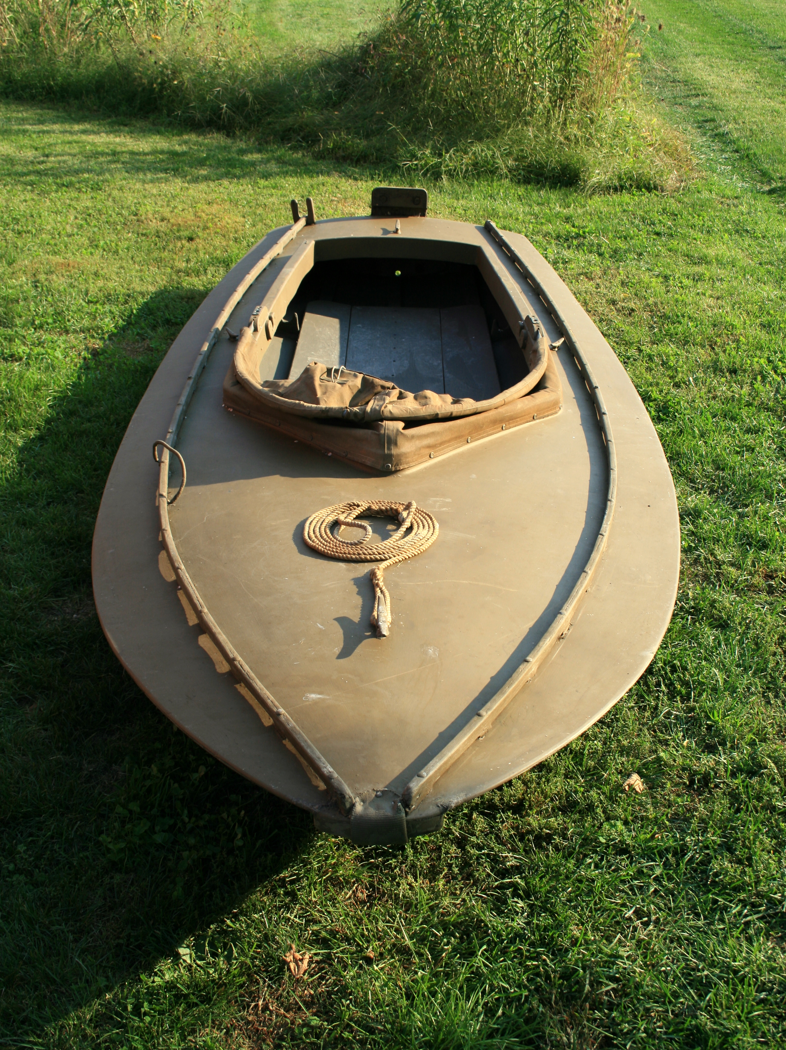 It has been my observation that do-it-yourself duck hunters are usually fairly skilled scroungers – perhaps “scavengers” is more polite. In order to make a dollar go a long way – or just to avoid the pain of actually spending one – scroungers/scavengers are adept at finding and “re-purposing” all manner of stuff that may not, at first glance, appear to have much value. Usually the stuff found through scrounging would be categorized as “Materials & Supplies” – the things you need to fabricate something from scratch. Thusly do wheel weights become decoy anchors and mop handles become pickup sticks. Sometimes, though, one stumbles across a find that would be more properly construed as “Equipment” – or perhaps “Durable Goods” – something in the nature of “the whole enchilada”. Such was the case when the U-boat Commander and I came across “Uncle Joe’s Sneakbox”. We were in the midst of “protecting freshwater wetlands for the People of the State of New York “. More specifically, we were conducting site inspections on the south shore of Long Island and were finding our way to the next location where someone was proposing to build something in or near a swamp or marsh or creek. Whether by dint of superior age, longer practice or – certainly not! – pulling rank, I spotted this “seen-better-years” vessel just a long moment before my partner. I do not recall if I actually hollered “I got it! – an instinct ingrained from the sandlot ball of my youth – but I clearly recall first seeing the unmistakable shape of a ‘glass Sneakbox right beside a dumpster at an auto body shop. We scheduled an ad hoc break – I believe our attorneys would refer to such behavior as “frolic and detour” – and pulled in next to the very same dumpster. A brief exchange with the proprietors – after assuring them that we were not there on official business – revealed that the craft was the property – most likely abandoned – of Uncle Joe. I was given Uncle Joe’s home phone and so the U-boat Commander and I returned to our appointed duties. A phone call that evening transferred the boat to me for its fair market value of $ 0 – it was pretty busted up – and I hauled my empty trailer down there the very next day.