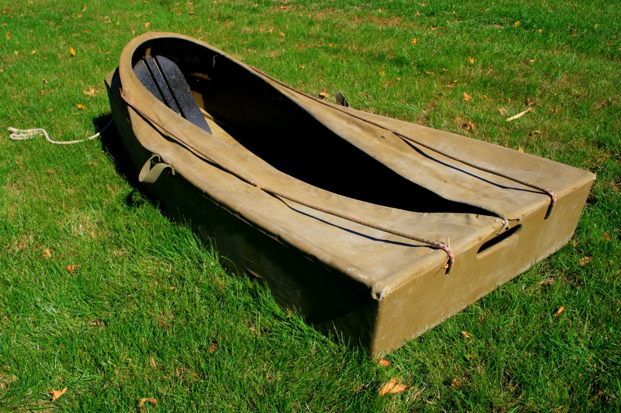 Of course, chasing ducks and geese on Great South Bay, we had the requisite grassboats and scooters. We generally hunted ducks over decoys and all learned to shoot by first lying on our backs and then sitting up when the birds presented the desired opportunity. So, what was needed for the interior of an island like Captree was something light that could be dragged out and then keep you dry and well-hidden when you lay down to shoot. A low profile was needed on the salt meadows. The salt hay seldom grows taller than your kneecaps during its growing season and usually lays down flat by the time the gunning season comes around. A Black Duck in a saltmarsh pothole can see danger coming from a long way.