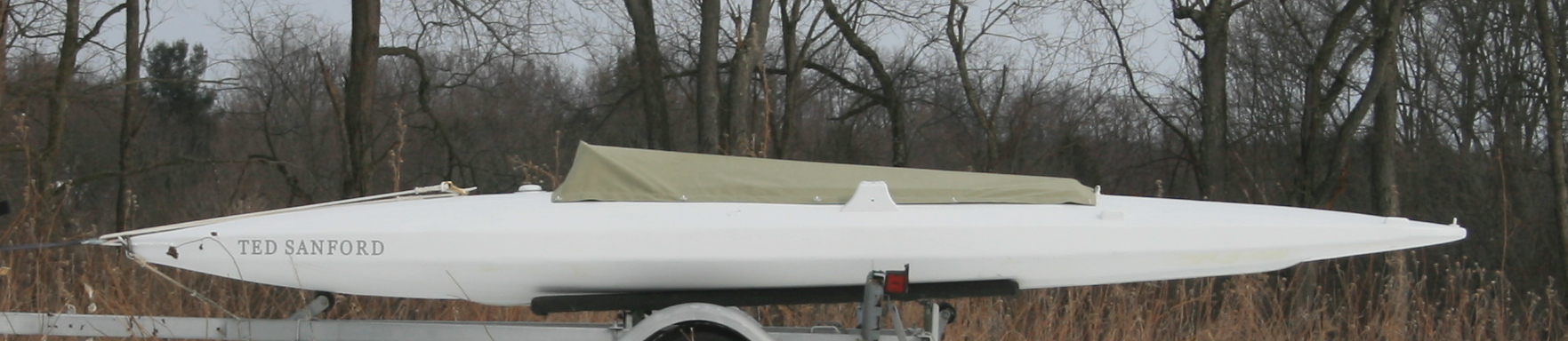 When I first knew this boat, the only canvas was a cover for a foam pad – to keep the gunner warm and comfortable on the floorboards. In the late 1960s – when I was in high school and always at my Dad’s elbow in the shop, we added the cowling. This precluded the use of the wooden hatch and so a canvas cockpit cover was needed, too. I replaced both – nothing lasts forever – in the 1980s – and I also made a lap canvas to cover most of me while actually gunning. All of these – thanks to age, weather, mice and wasps – needed replacement. Instead of the cotton canvas I had used previously, though, I would now use Sunbrella – a polyester that is the standard nowadays for boat covers and such. I use a simple Sears Kenmore sewing machine – a wedding present from my parents when Susan and I married in 1975. With the right needles and thread – and especially with pre-wound bobbins and Seamstick – the work is straightforward and – like many other “manual arts” – satisfying in its own way. Living as I do in dairy country (meaning: not boat country…), I order all of my canvas supplies from either sailrite.com or mainlandsails.com.