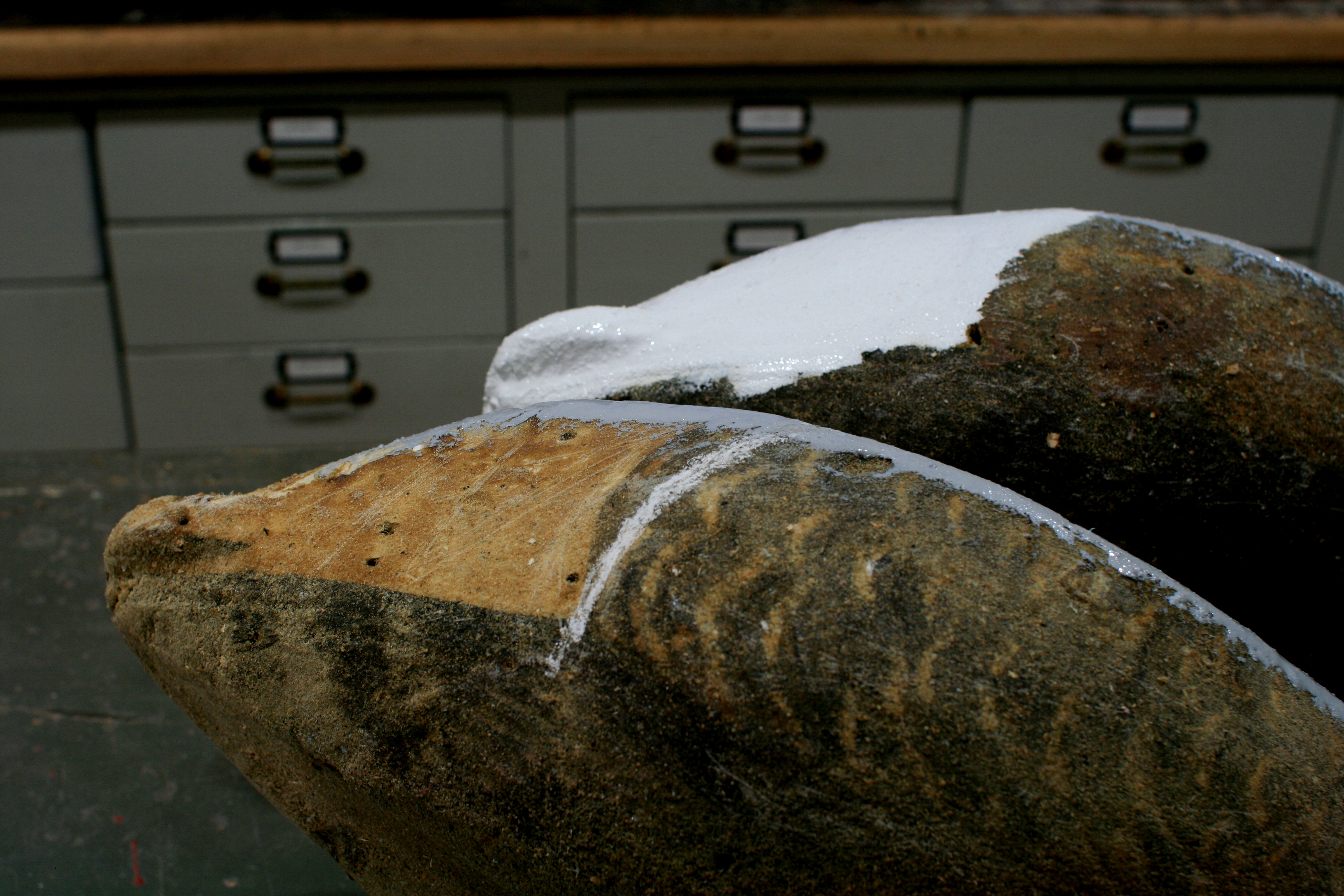 Once the epoxy has cured – usually overnight – I use a whisk broom to remove any loose sawdust.  Most of the sawdust should have absorbed enough epoxy to cure into a hard, miniature point, so that the surface of the decoy now feels like 80 grit sandpaper.  It is ready for painting without sanding or priming.