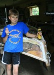 - 14 – The new ‘glass on the sides wrapped up over the gunwales and down below the chines.
