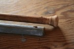 Staff ~ To keep the nylon flag from sliding up or down the pole, I drill a small hole through the top of the staff and then hand sew through the nylon with a heavy, waxed nylon whipping thread. Finally, at the bottom end of the staff, I glue a Turk’s Head from some old decoy line. I provides a nice knob on the end – and sure adds some salt to the look. I rely on pages 28 and 29 in Hervey Gerrit Smith’s The Marlinspike Sailor to help me remember how to tie one. I draw it tight with the help of an awl (or marlinspike) and then epoxy it over the handle. I paint the entire staff with 2 coats of flat oil paint.