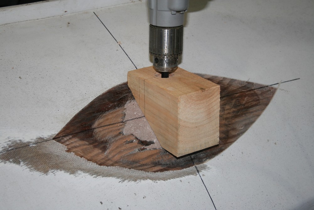 4 Boring jig Published September 11, 2014 at 1000 × 667 in Skidmore Scooter – a plywood whaleback ← Previous Next → 13 – This jig helped to guide the drill vertically through the deck and the new chock behind it.