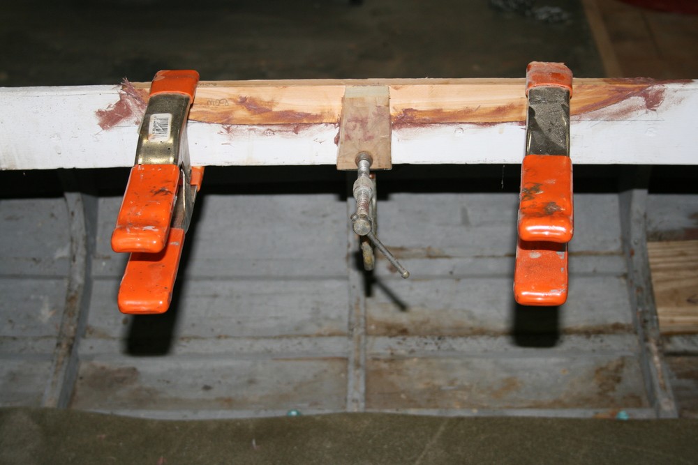 4 Dutchman glued up Published September 11, 2014 at 1000 × 667 in Skidmore Scooter – a plywood whaleback ← Previous Next → 4 – Epoxy was thickened with cabosil and microballoons – and everything was clamped overnight.