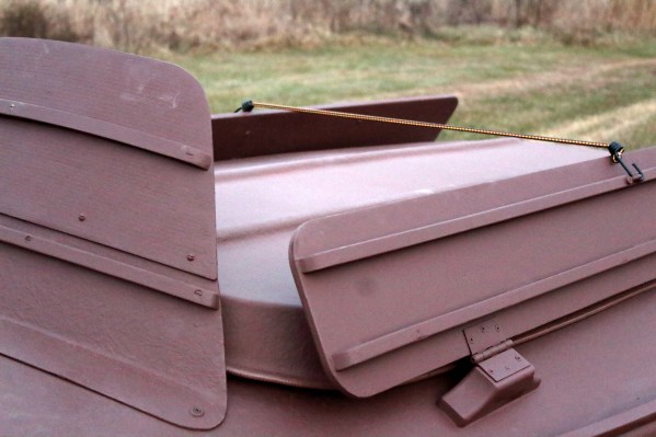 The flap boards held up by the bungee cord keep the hatch in place – even over 200 miles at highway speeds.