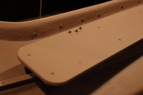 The interior of the hull also got a light sanding – and a thorough wash with acetone. The windows and doors were wide open on the shop for the latter task.
