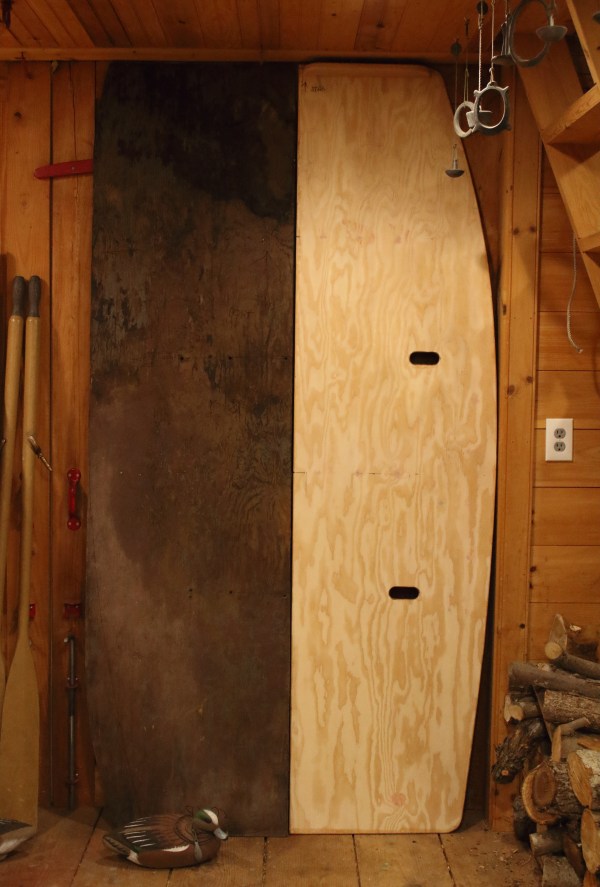 Two coats of topcoat paint – Lou Tisch’s FME (Flat Marine Enamel) – were put on the completed ‘boards.