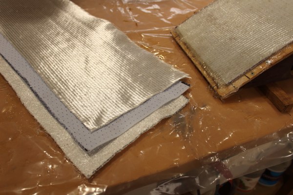 I tried a new product for the ‘glass layup. In addition to an inner and outer skins of the 1708 biaxial (that I used to patch the deck), I sandwiched in a layer of 2 mm Core Mat. It is intended to add bulk and stiffness without much weight. All of these materials are compatible with either polyester or epoxy resins. I would have used the less-expensive polyester but it was too cold outside. I did not want the polyester resin “aroma” permeating my shop – probably forever – so I used the epoxy instead. The wood stove ensures thorough cures throughout the winter.