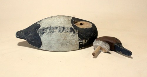 This old bird is a newcomer. I have recently been hunting for older Wildfowler decoys – especially the balsa-bodied Superior Model – in Broadbill (for my shelves) and Mallard/Black Duck (for yet another puddle duck rig for smaller waters). This bird was a gift that met my criteria: an Old Saybrook (CT) or Quogue (LI) gunning decoy that has seen plenty of wear – and so held little collectible value in its hard-earned state.