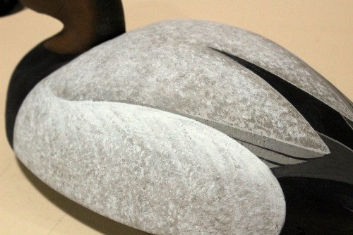 It must be nice to live within the kingdom of the Canvasback. I have, at times, lived where I could go visit some. There were a few ponds on Long Island where I could reliably find a couple of hundred Cans. When I was first married – in the early 70s – I could see over a thousand on Lake Champlain. When I lived in Buffalo we had flocks circling our rig on the Niagara River. The season was closed but it was a sight to see – these really big divers cutting their figure-eights above our heads – with those long silvery wings. They are a great bird to carve and to note the minor differences between them and their other pochard cousins – not much of a tail section and that neck can get mighty tall. I especially savor the Roman nose bump and the stippled canvas on the back.