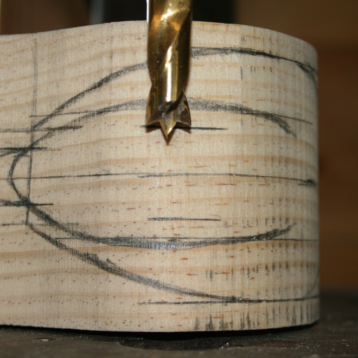 20 – Set drill press depth Published August 9, 2013 at 2592 × 2592 in Carving a Mallard Head – Tutorial ← Previous Next → 20. I use a 7/16″ brad point on a drill press to bore out eye sockets.