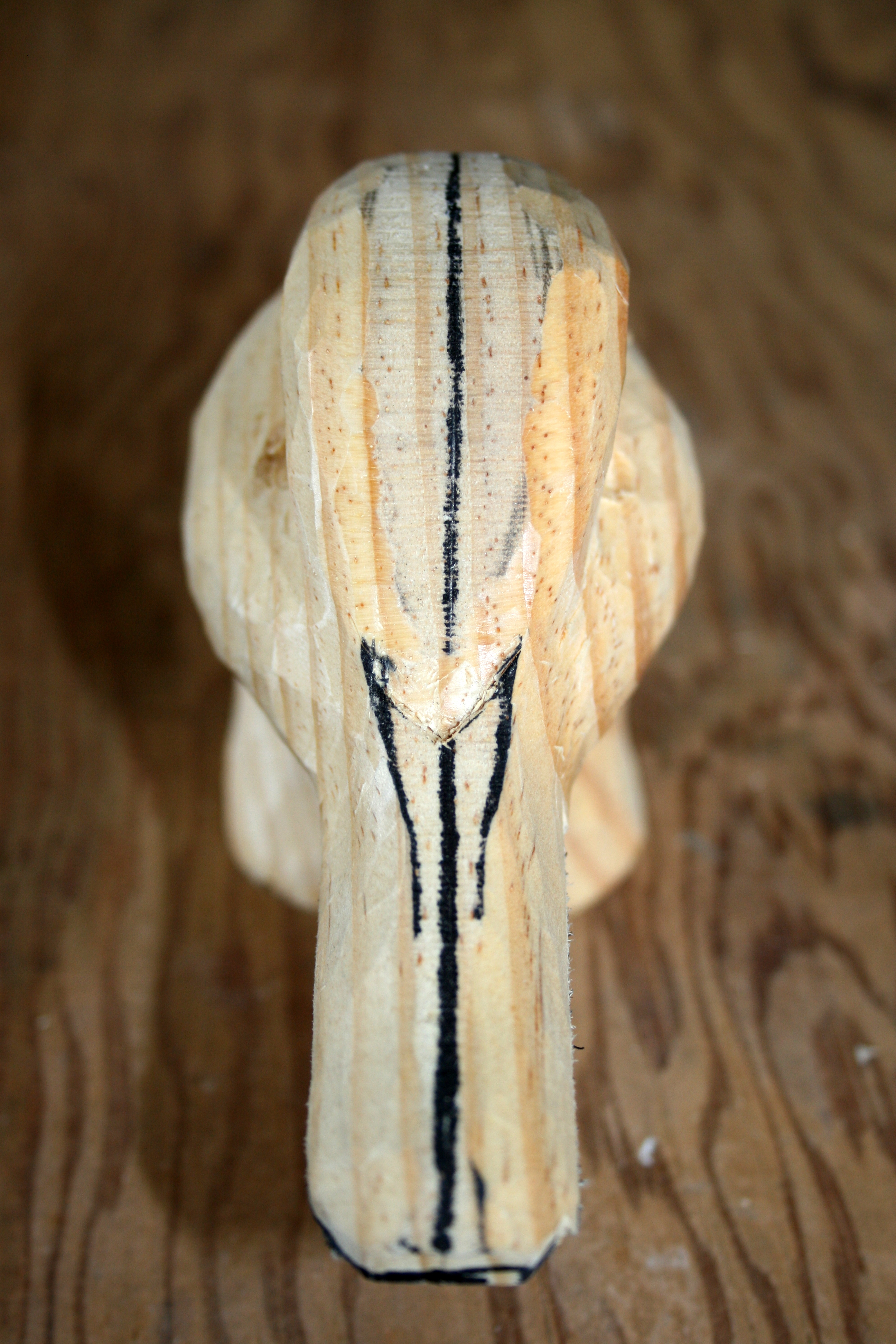 44 – Round both sides of crown Published August 9, 2013 at 2592 × 3888 in Carving a Mallard Head – Tutorial ← Previous Next → 45. I stay away from centerline and get there with sandpaper later on.