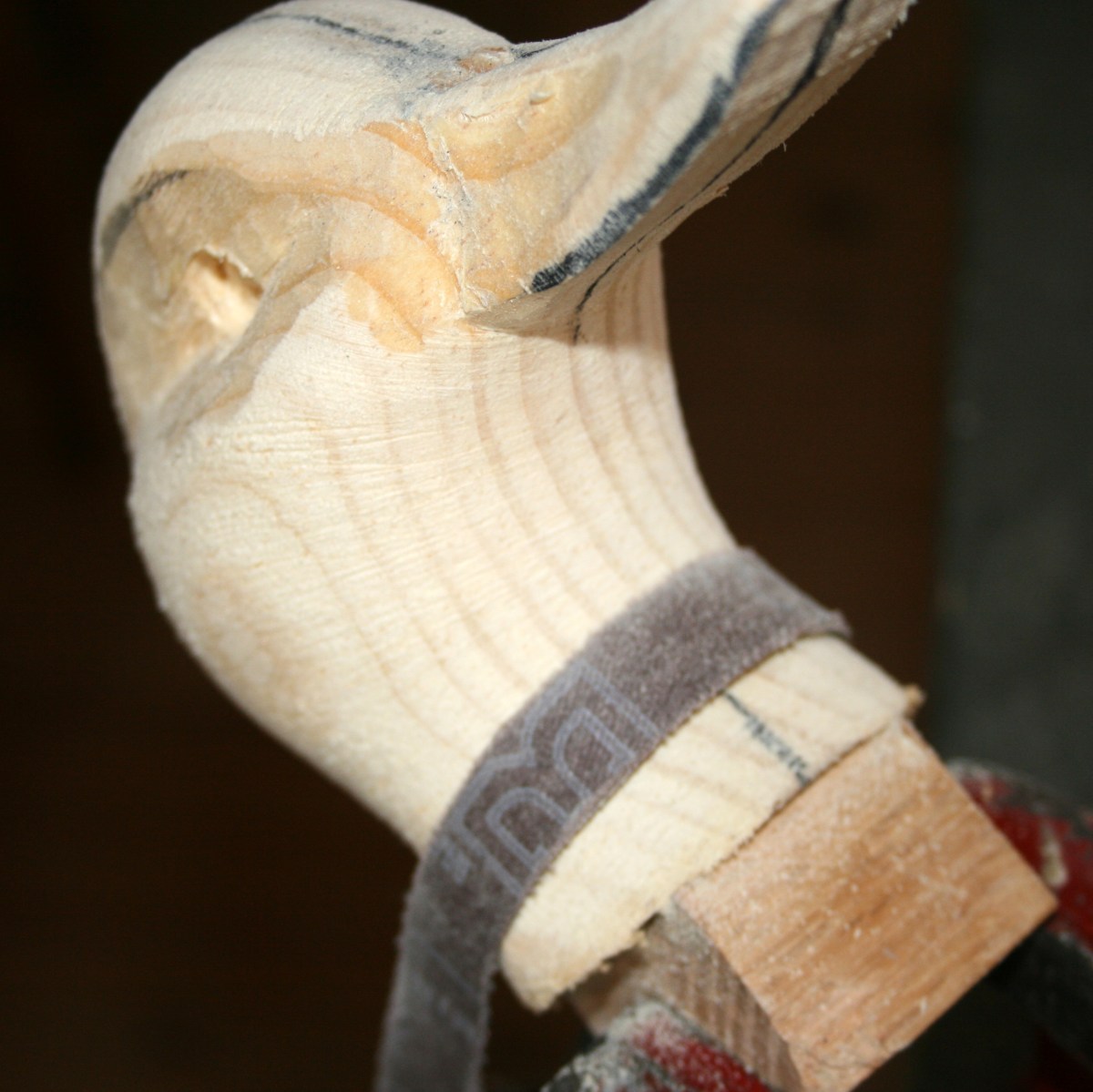 50 – Shoeshine head with coarse then finer belts Published August 9, 2013 at 2587 × 2586 in Carving a Mallard Head – Tutorial ← Previous Next → 52. I rip sanding belts into whatever widths make sense. Grits are usually 60 or 80. Do as many aspects as you can in the vise.