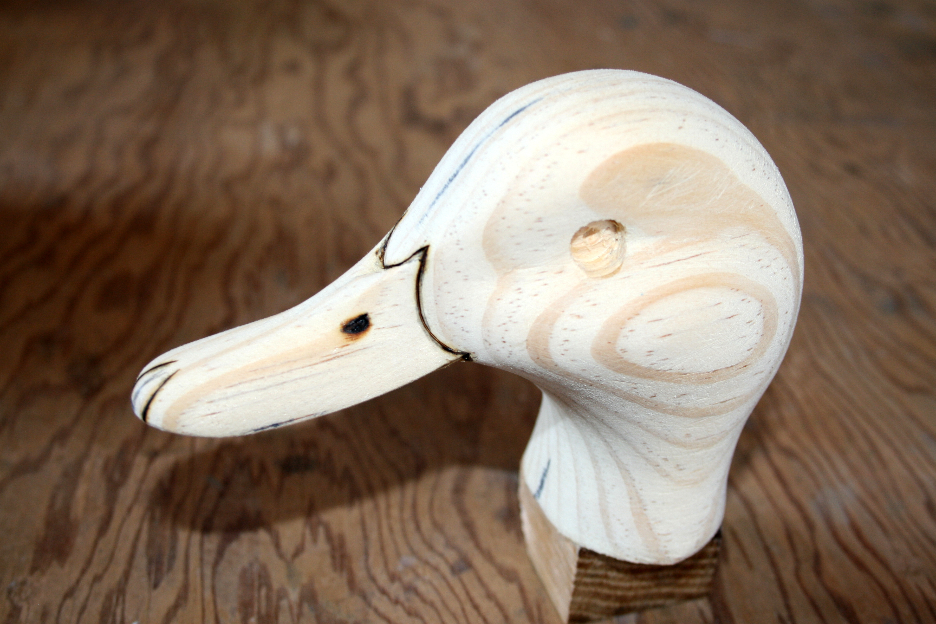 55 – Ready for eyes Published August 9, 2013 at 3888 × 2592 in Carving a Mallard Head – Tutorial ← Previous Next → 56. The carvings all done except around the eyes.