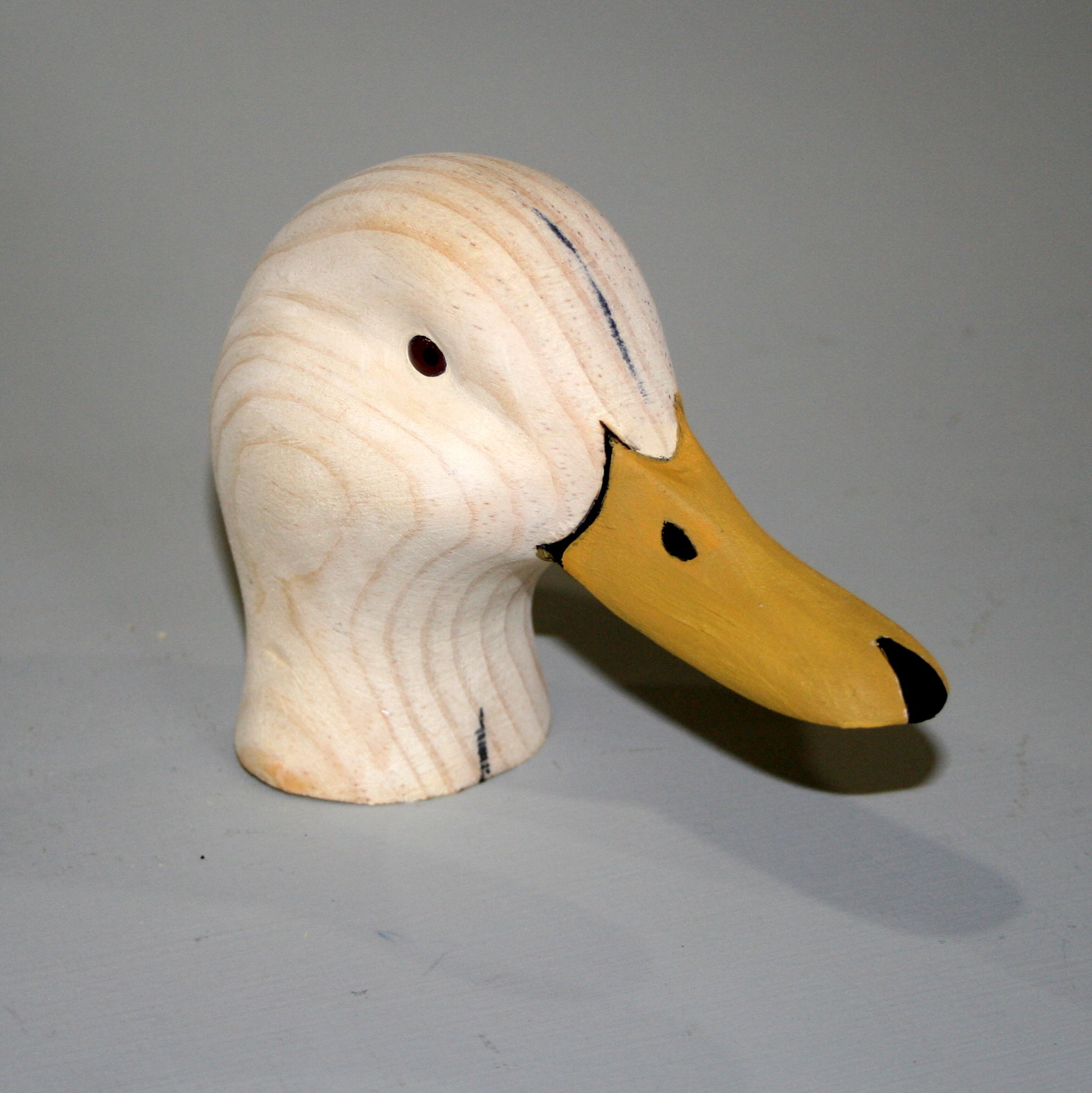 67 – Ready for a body Published August 9, 2013 at 1985 × 1986 in Carving a Mallard Head – Tutorial ← Previous Next → 64. Here’s the finished product. I often paint the bill just to be sure I like the head. It will get sealed with varnish and primer before finish paint goes on.