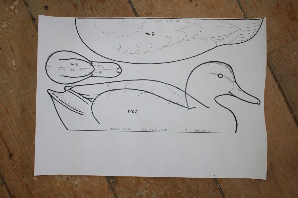 1 – enlarged pattern Published August 12, 2013 at 3888 × 2592 in Foamer Decoy Tutorial – a Black and a Mallard ← Previous Next → 1. I enlarged my pattern on a copier to 140 percent – the body is 9″ wide X 18″ long.