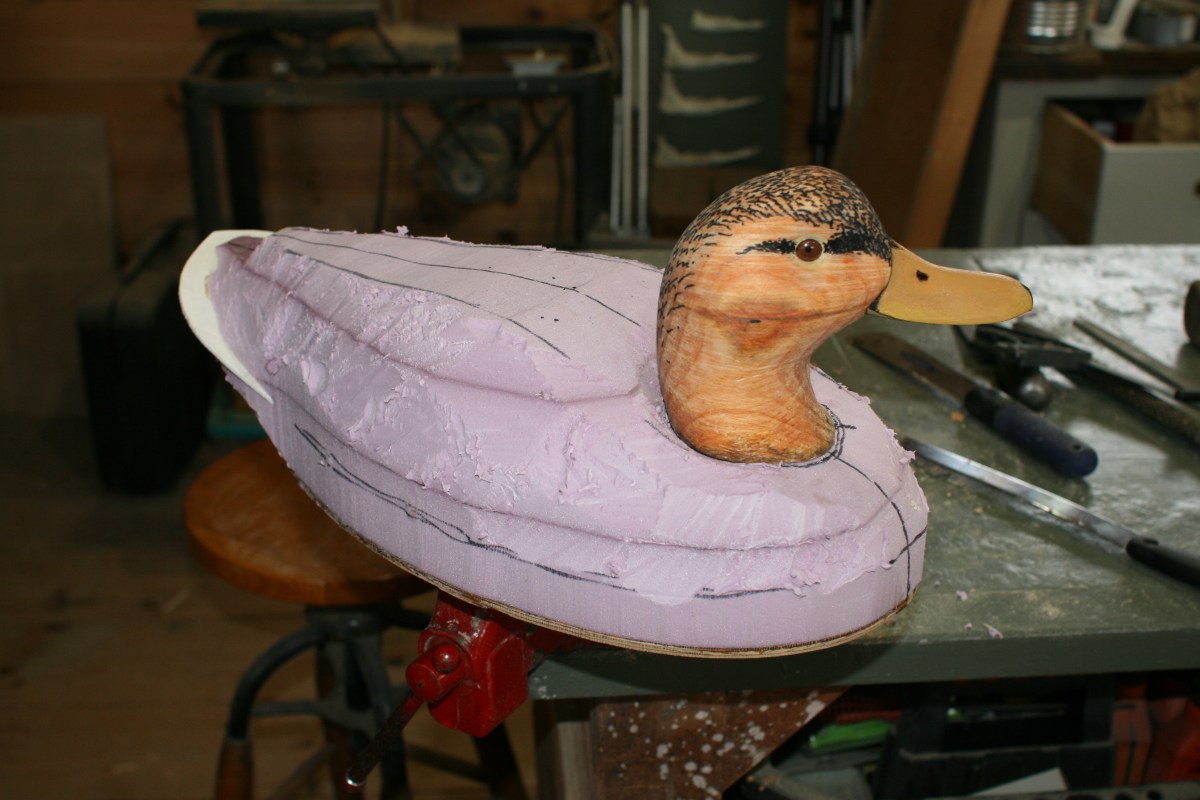 28 – rough-carved Published August 12, 2013 at 3888 × 2592 in Foamer Decoy Tutorial – a Black and a Mallard ← Previous Next → 28. A medium rasp helps, especially though the glue lines.