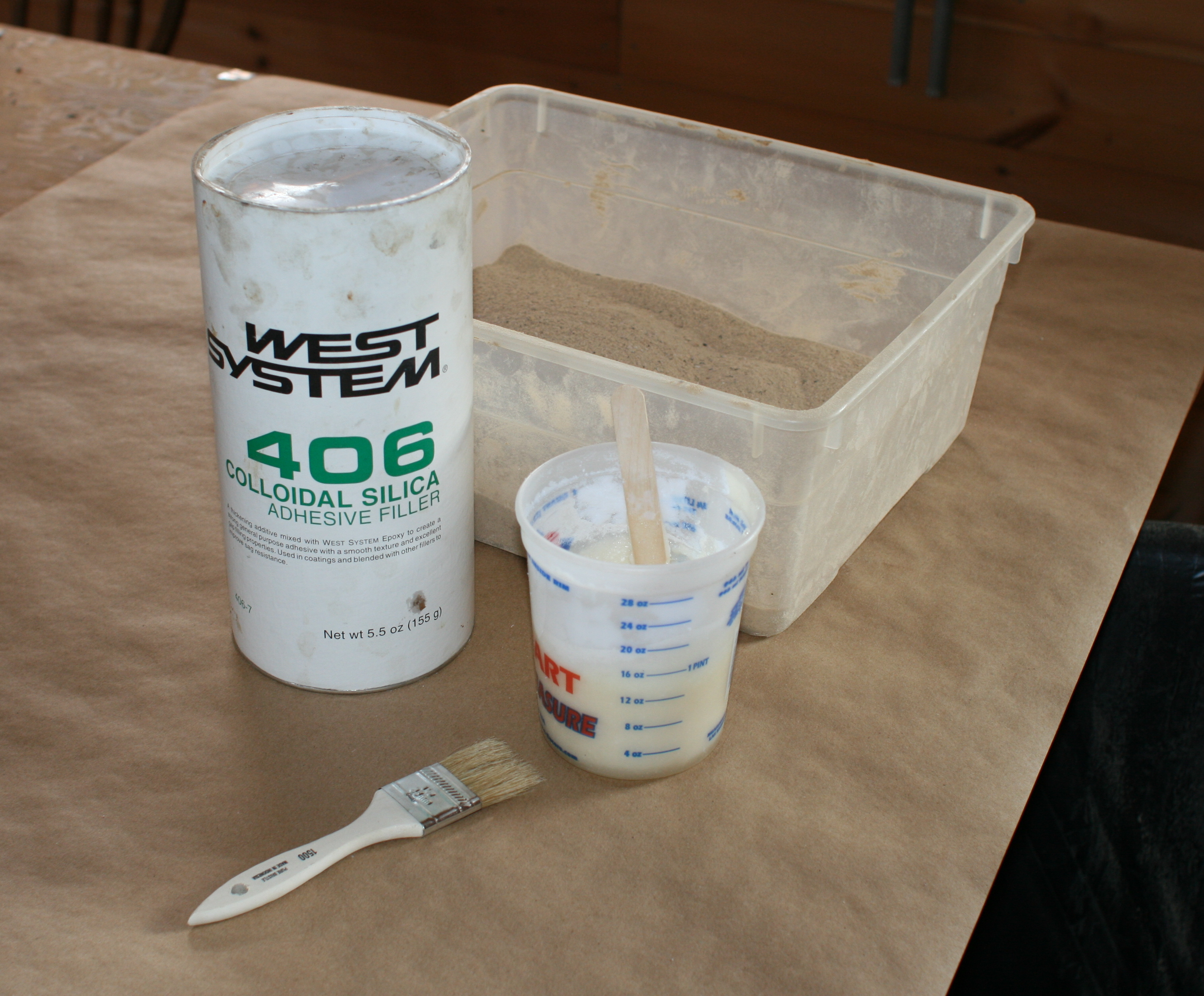 35 – After coating with thickened epoxy, sprinkle fine sawdust over entire topsides. Published August 12, 2013 at 3032 × 2509 in Foamer Decoy Tutorial – a Black and a Mallard ← Previous Next → 34. I thicken marine epoxy with colloidal silica then sprinkle fine sawdust on the wet epoxy.