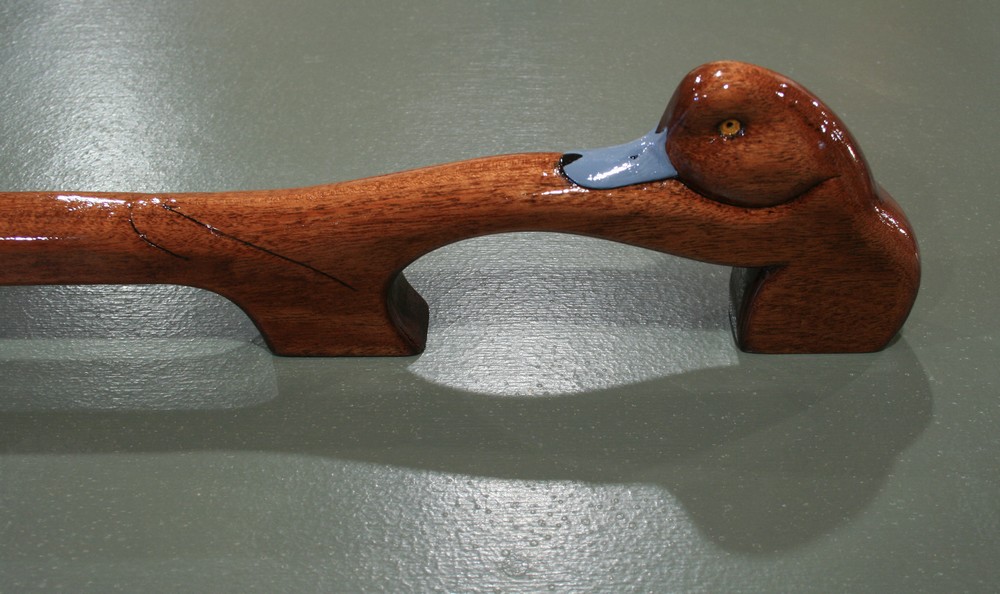 For a long time now, I have looked for ways to put the shape of a duck on my boats. The first I can remember – circa 1980 – was on the tiller of an Old Town Whitecap – the only sailboat that famed canoe company ever made. I had christened her Oldsquaw and so – since she needed a new tiller anyway – I carved the head of an Oldsquaw on the tiller’s forward end. The fat-cheeked contours of the head made a convenient rest for my thumb as I maneuvered her around Great South Bay. Because ‘squaws have a short bill, the straight-out posture caused no problems in the cockpit.
