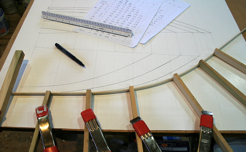 D2 Clamping the spline Published April 2, 2014 at 1024 × 634 in Great South Bay Scooter ← Previous Next → 2 – Measuring above and below the sheer line I mark every 4 inches and then bend and clamp a spline to the marks.