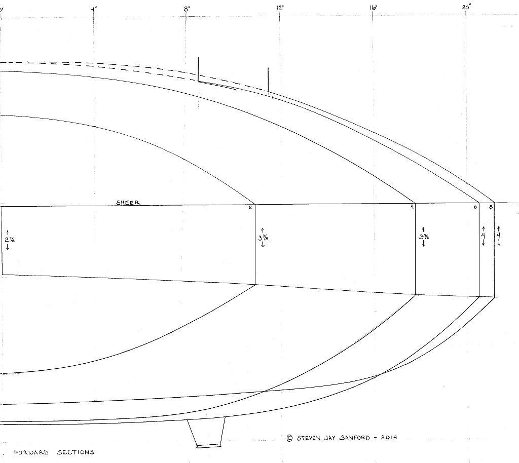 D5 Cropped 2 – Forward Sections Published April 2, 2014 at 1024 × 914 in Great South Bay Scooter ← Previous Next → 5 – Here are the forward sections – drawn full scale.