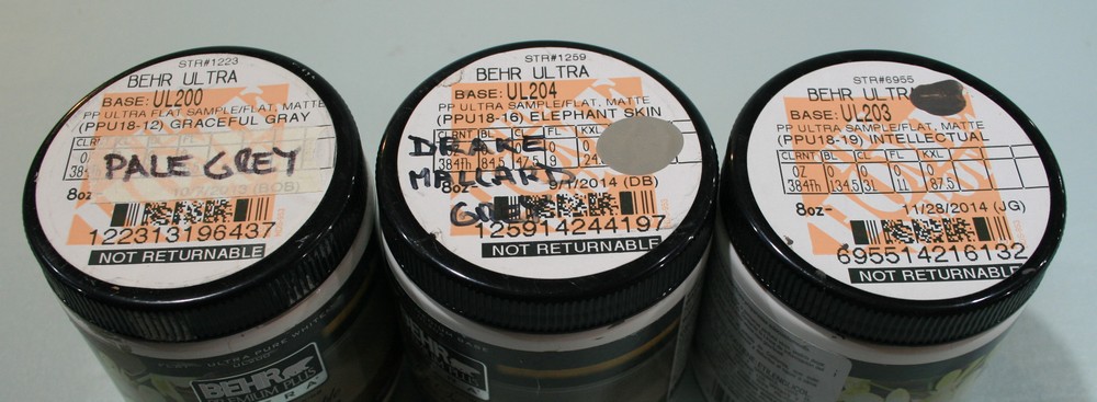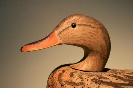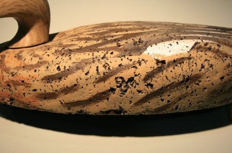 I will finish gunning decoys in either oils or acrylics but I usually use the latter.  Acrylic latex house paint is easy to use because it thins and cleans up with water and because it is inexpensive, available in almost any color, and comes in small containers.  I use Behr paints from Home Depot.  They are dead flat, cover well and available in 8-ounce sample jars.  So, I don’t mind buying  even “odd” colors – as for bills and speculums – because at $3 or $4 per jar, it’s quite reasonable.  On the other hand, because these are acrylics, I can always just use some tube acrylics for the smaller accents.