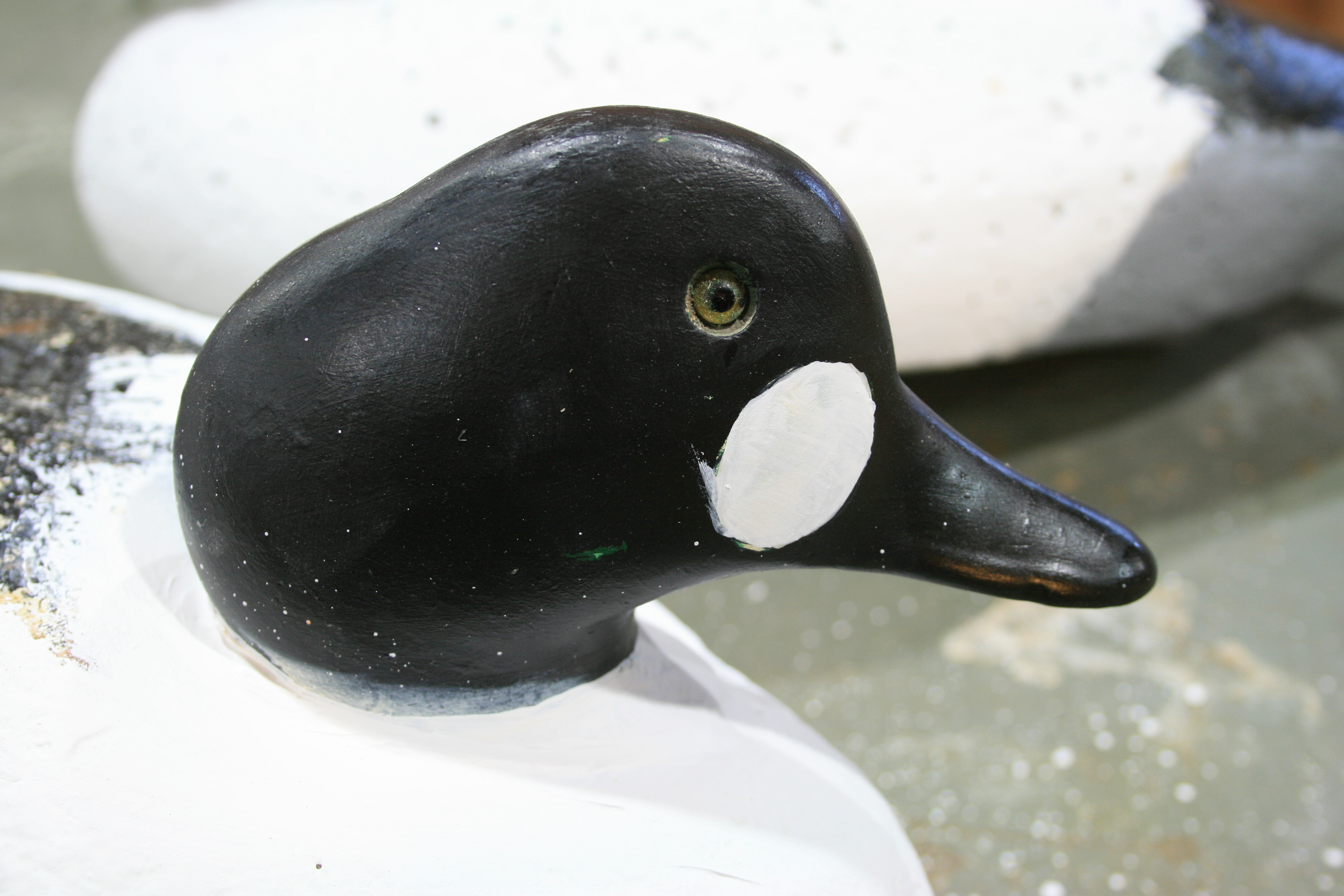17 Published July 23, 2015 at 3888 × 2592 in Rehabbing & Painting Goldeneyes ← Previous Next → 4 – Carry it up onto the lower neck and paint in the oval between the eye and the bill.