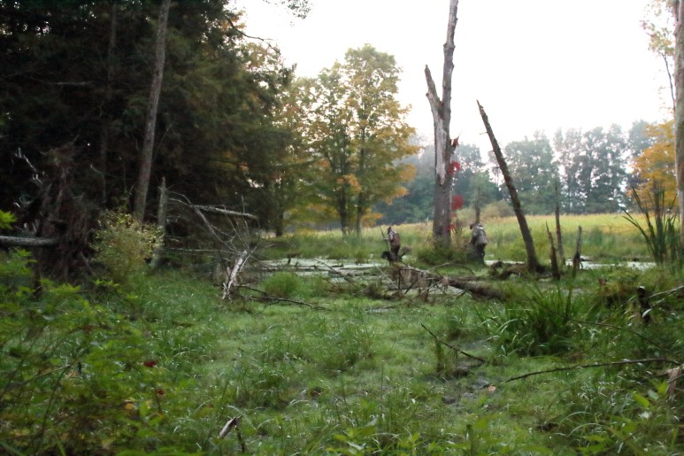The blind in the background was for my Dad. In his last few seasons, he had the Hemlock Swamp all to himself on Opening Weekend. He could no longer wade into swamps, so I made this one to meet his needs – a short walk – on a yuppie trail – to a stand-up blind on the east bank.