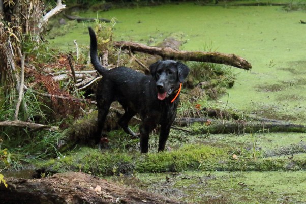 Although we had seen as many as 50 or 60 birds using the Hemlock Swamp, the week preceding Youth Waterfowl Weekend was showing a dozen or so Mallards, a handful of Woodies and a pair of Blue-winged Teal. This half-acre swamp is tough to sneak, so I surveyed it only near the end of each day. A single Great Blue often joined the fleeing birds. I stayed away altogether on Friday and presumed that at least some birds would show up on Saturday morning – enough birds for a lone gunner and his retriever.
