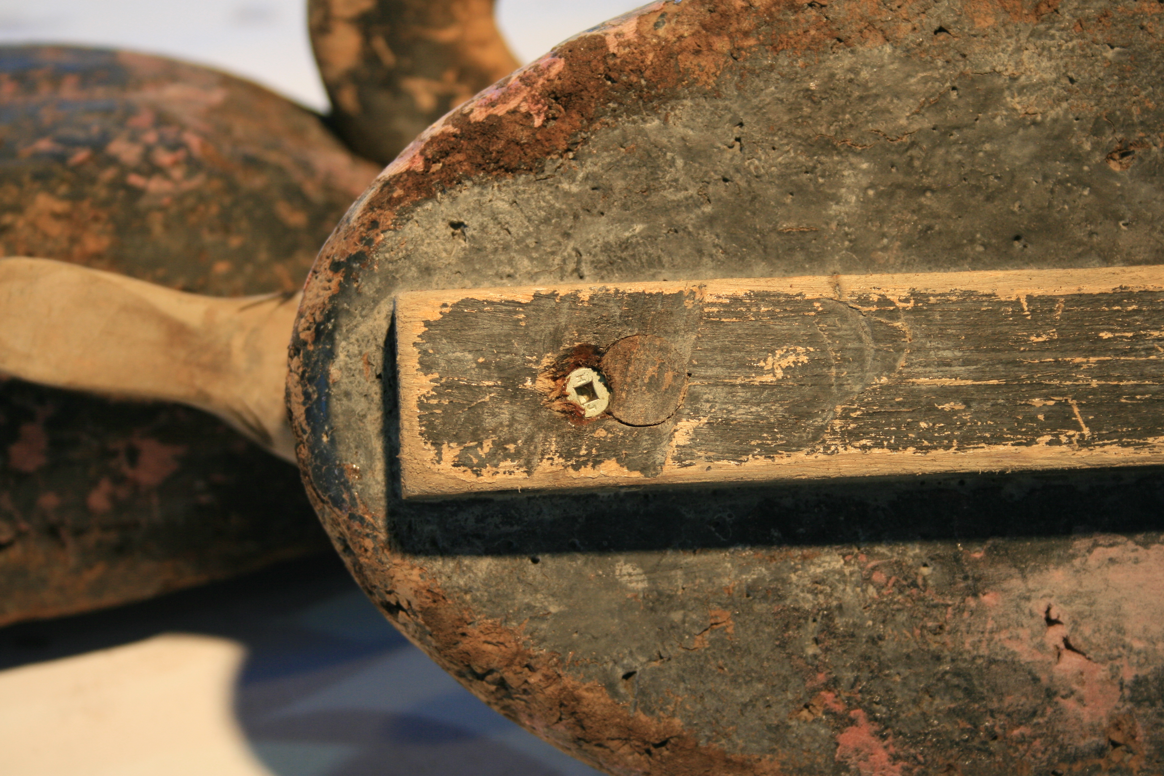3 Head screw – from bottom Published October 9, 2014 at 3888 × 2592 in Re-painting L L Bean Coastal Blacks and Mallards ← Previous Next → Here is a better view of the dowel and the driven screw.