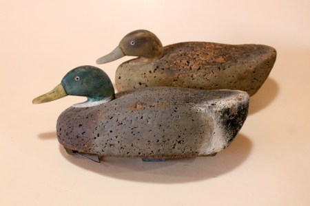 These Atlantic Coast cork Mallards – either Old Saybrook or Quogue – are different from the Black Ducks in 2 ways: they lack pine bottom boards and the undertail is cut at an angle. The latter feature enables them to stow on the deck in a stool rack.
