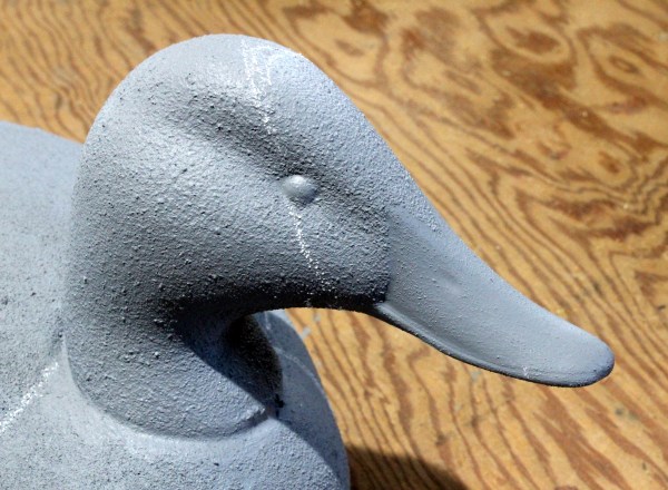 I sand the heads with 80-grit and then wipe with lacquer thinner before the epoxy coating. Once the epoxy cures, the entire bird gets a heavy coat of Grey Latex Primer.