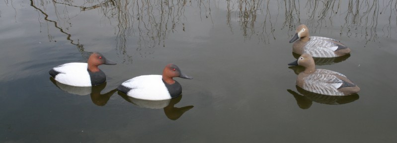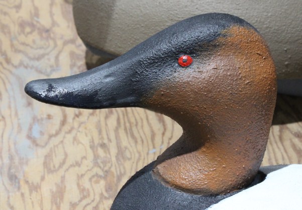 The lordly Canvasback has never been a common species on Great South Bay. There have long been spots where I could go to “visit” with them – typically freshwater ponds where they would spend the winter dining on aquatic vegetation. When I was first married – in the mid-1970s – I could reliably watch a thousand or so where the Ausable River empties into Lake Champlain. I worked in NYSDEC’s Buffalo office in the early 80s and counted Canvasbacks on the Niagara River from an airplane, and – as the season was closed the years I was there – I could watch the powerful flocks flying figure-8s over our decoys. Nevertheless – like most gunners – the bird holds for me an undeniable allure. My Dad had 6 Herter’s Model 72s from the 1950s in his Broadbill rig. I re-painted them a few years ago.
