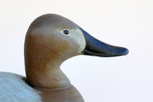 An important thing to remember about the Canvasback is that its mid-section is longer than in its cousins. The Can is one of five North American “pochards” – diving ducks in the genus Aythya. Others are the Redhead, the Ringneck and the Greater and Lesser Scaups. Compared with these birds, the dark chest and tail section are smaller and the mid-body is longer. So, when you lay out the paint pattern, the break between the chest and the sides is farther forward and the break between the sides and the tail section is further aft. This is true of both the Drakes and the Hens.