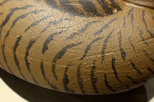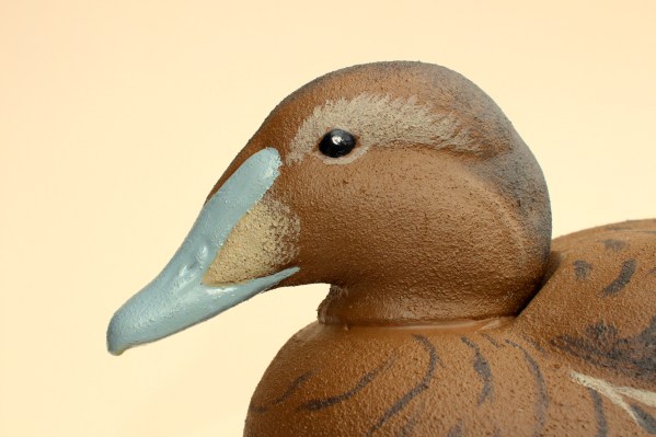 The bill is a bit darker on the Hen than the Drake. This should probably be a shade or two darker. The eye is painted Black and – along with the bill – will later get a coat of varnish for both luster and protection.