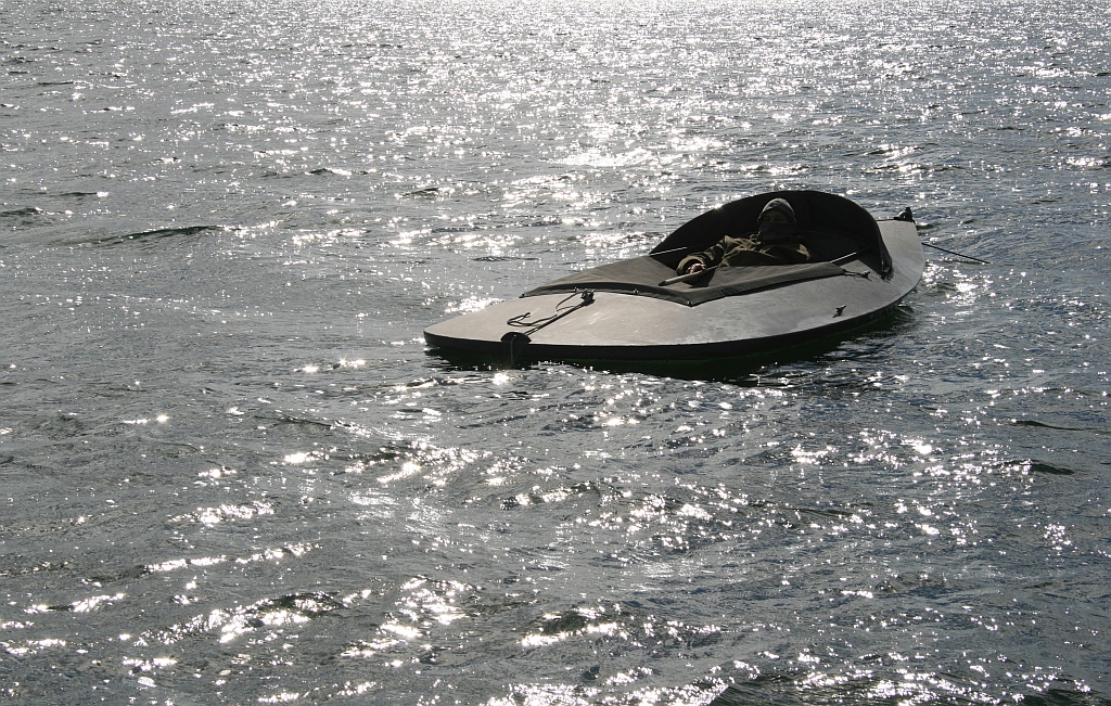 There are 3 pieces of canvas that work together to make this vessel safer, more comfortable, more effective and more convenient. The “cowling” is like a low spray dodger. It keeps errant seas out of the cockpit – and off gunners’ necks – but, more important, it keeps the wind out of the cockpit and it hides the silhouettes of the gunners heads. I decided to make it fixed (not lowerable) and out of canvas – but it could have been made out of plywood or ‘glass.
