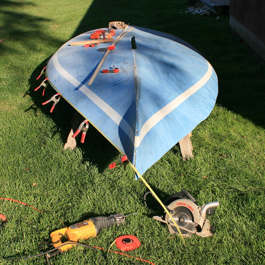 12 – Striking a fair waterline Published October 26, 2013 at 1024 × 1024 in White-Wing – 2-man scooter ← Previous Next → I cut to the line with a circular saw – first port, then starboard.