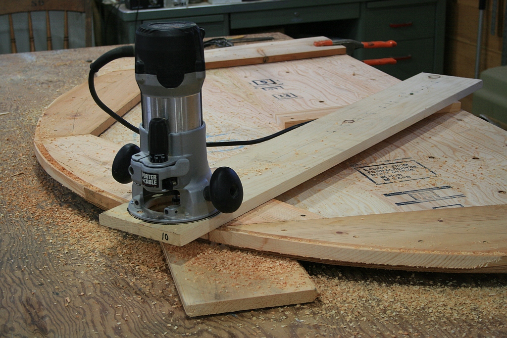 16 – Final cut is made with a straight bit in a router mounted on a trammel board. Published October 26, 2013 at 1024 × 683 in White-Wing – 2-man scooter ← Previous Next → Radii are cut with the router fastened to a board that pivots on a single screw.