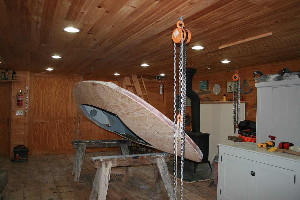 18 – Chain hoists help with flipping her over for glassing. Published October 26, 2013 at 1024 × 683 in White-Wing – 2-man scooter ← Previous Next → The chain hoists ease flipping – especially appreciated in a one-man shop.