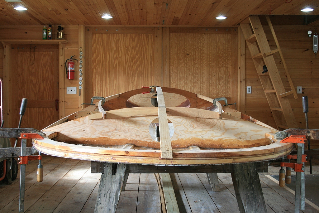24 – Hull is fastened to bottom of harpin. Published October 26, 2013 at 1024 × 683 in White-Wing – 2-man scooter ← Previous Next → Aft bulkhead is epoxied into hull.